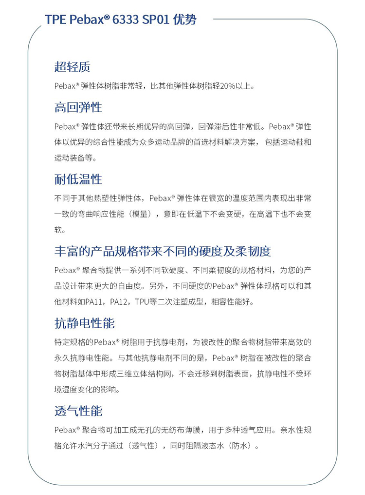阿科玛 ARKEMA 热塑性弹性体 TPE Pebax® 6333 SP01 含UV稳定剂